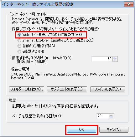 A3. Internet Explorerの[インターネット一時ファイルと履歴の設定]の設定を変更してください。