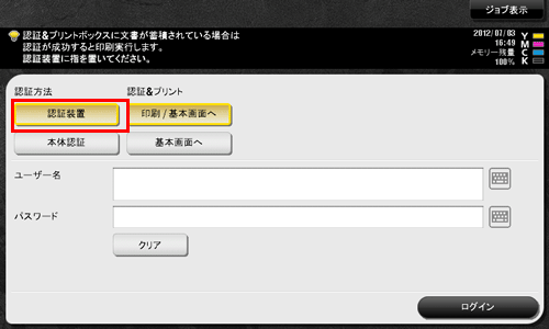 認証が開始されます。認証に成功すると、本機にログインします。