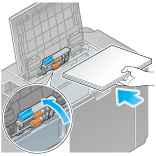 給紙ローラー部を上に持上げて、印刷したい面を下向きにして用紙をセットします。