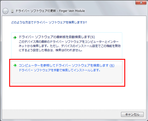 ドライバーソフトウェアの検索方法を選択する画面で[コンピューターを参照してドライバーソフトウェアを検索します]をクリックします。