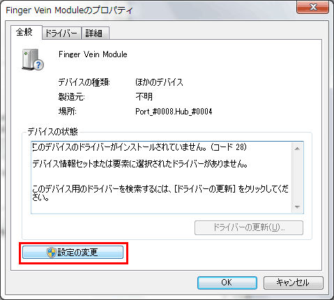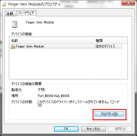 [ハードウェア]タブの[プロパティ]をクリックします。
