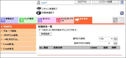 [短縮宛先] | よく送信する宛先を本機に登録できます。また、本機に登録されている宛先の登録内容を確認したり、編集したりできます。 |