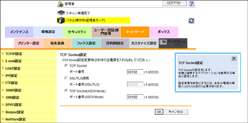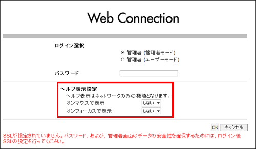 Web Connectionに管理者モードでログインしたときに表示される[ネットワーク]メニューでは、ポップアップヘルプを利用できます。