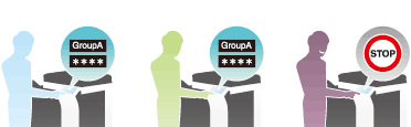 部門管理機能を導入すると、複数のユーザーをまとめて、部門という単位で管理できます。部門の認証情報は、本機の内部で管理します。