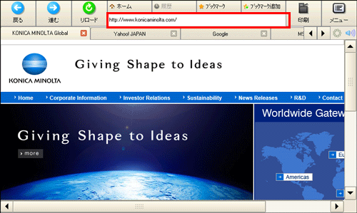 ツールバーにページのURLを入力して、直接ページを表示します。