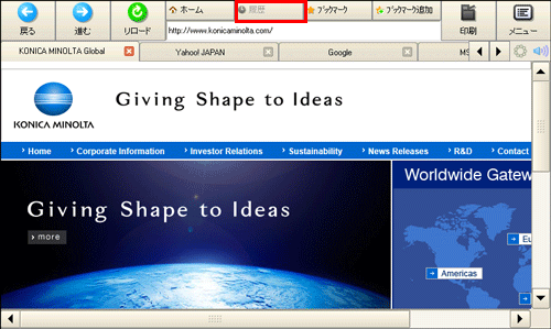 これまでに表示したページの一覧から、表示したいページを選べます。
