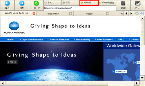 本機に登録されているブックマーク(お気に入り)の一覧から、表示したいページを選べます。