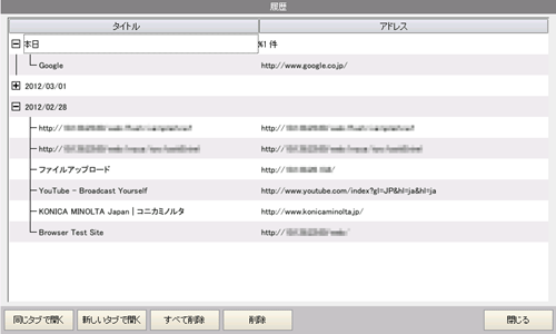 本機では、ページの閲覧履歴を100件まで保存できます。