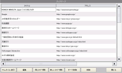 ツールバーの[ブックマーク]をタップすると、本機に登録されているブックマークの一覧を表示します。