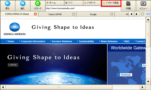 表示しているページを、本機にブックマーク(お気に入り)として追加できます。