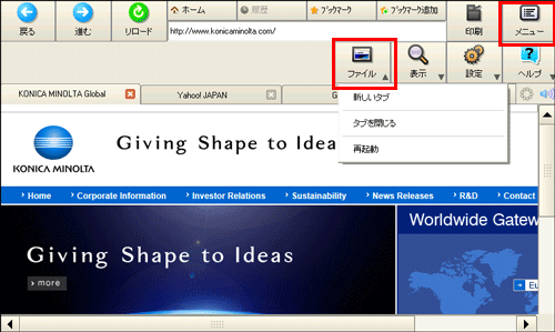 ツールバーの[メニュー]-[ファイル]で、タブを操作できます。