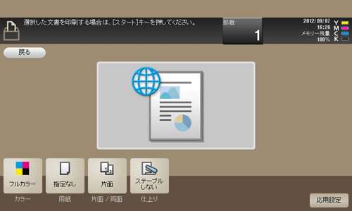 必要に応じて印刷設定をしてから、スタートを押すと、表示しているページを印刷します。