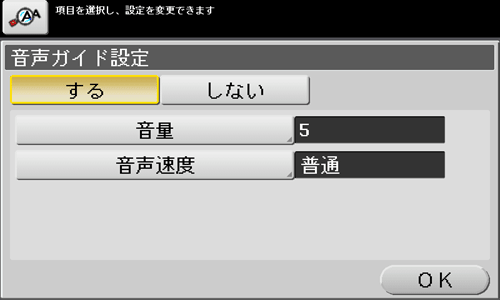 トップメニューから[ユニバーサル設定]-[音声ガイド設定]をタップします。