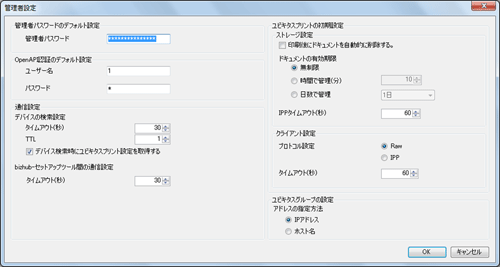 [ユビキタスプリントの初期設定] | 新規にユビキタスプリント設定を行う本体に送信する初期値を設定します。 |
