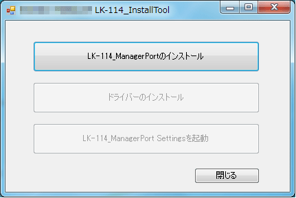 管理者から配布されたLK-114_InstallToolを使用して、LK-114_ManagerPortをインストールします。