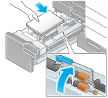 給紙ローラー部を上に持上げて、印刷したい面を上向きにして用紙をセットします。