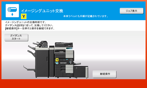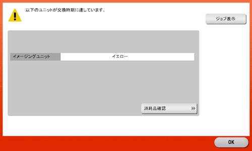 (イメージングユニットについてのメッセージを表示するには、サービスエンジニアによる設定が必要です。詳しくは、サービス実施店にお問い合わせください。)