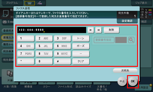 [ファクス番号] | 相手先のファクス番号をテンキーで入力します。 |