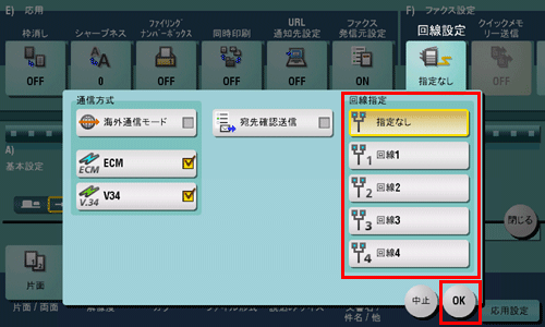 [回線指定] | 回線を複数使用している場合、送信に使う回線を選びます。 |