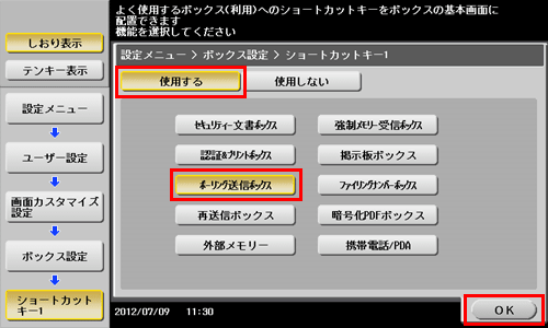 A1. コピーモードおよびボックスモードでは、よく使う設定をショートカットキーとしてトップ画面に表示できます。