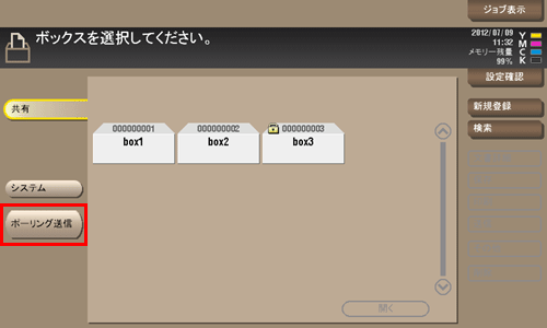 ボックスモードのトップ画面にショートカットキーが表示されます。