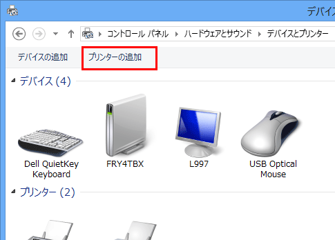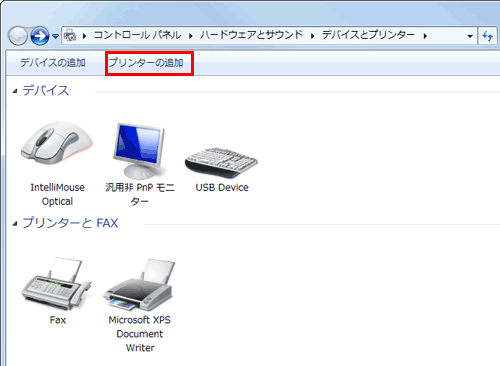 Windows 7/Server 2008 R2の場合は、[プリンターの追加]をクリックします。
