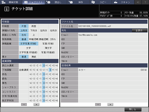 [チケット詳細]画面で各ジョブの詳細を確認できます。