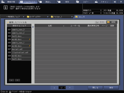フォルダーやボックスを新規に作成し、ジョブを保存することもできます。フォルダーやボックスの作成のしかたについては、フォルダーやボックスを準備するをごらんください。