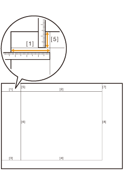 図は[1]を測定するときの例です。目盛りの間隔は0.5 mmです。
